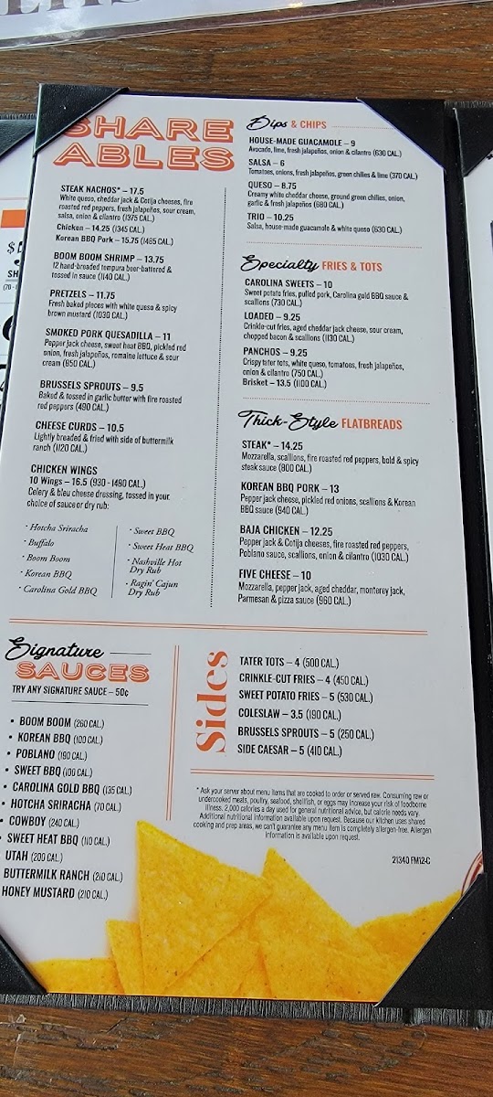 Korean BBQ Pork, queso, cheddar jack & Cotija cheeses, fire roasted red peppers, onion & cilantro, jalapeños, sour cream & salsa (1475 CAL.)